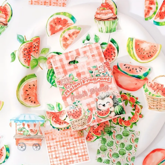 Cajita de Stickers PET – Frutas & Animalitos (40 piezas) 🍎🐰🍉