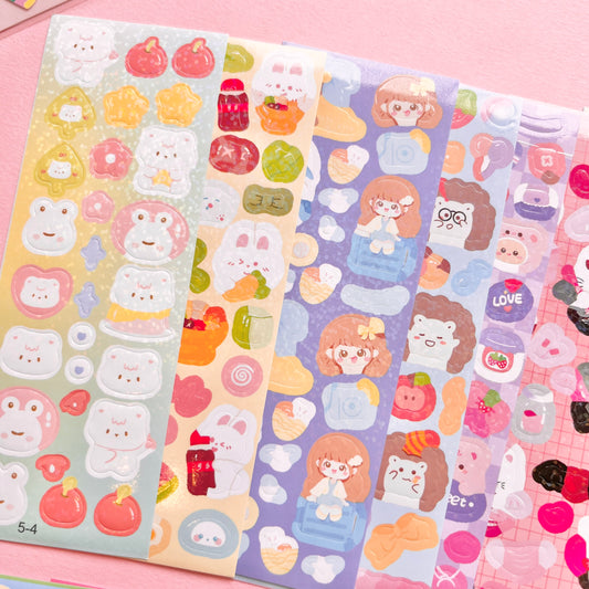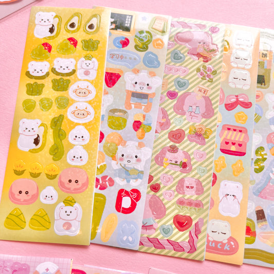 Set de Stickers PET XL DIY – Diseños Kawaii (2 planchas) 🎀✨