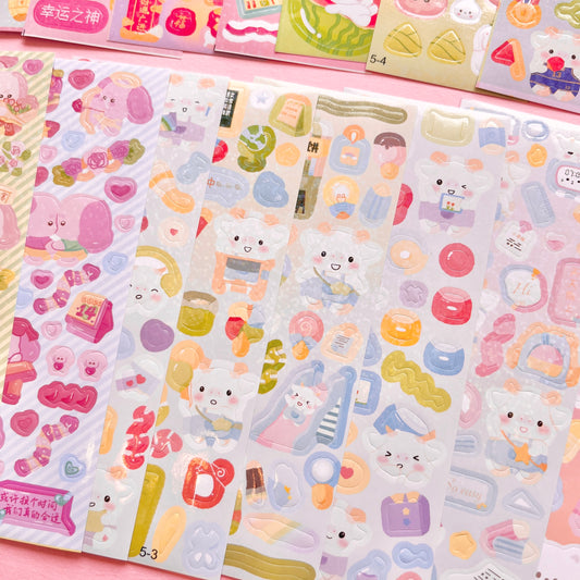 Set de Stickers PET – Animalitos Kawaii (6 planchitas por set) 🐰🐶🐼✨