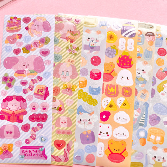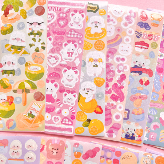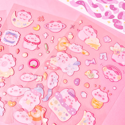 Set de Stickers Troquelados en PET – Cerdito Kawaii (4 planchitas) 🐷🎀✨