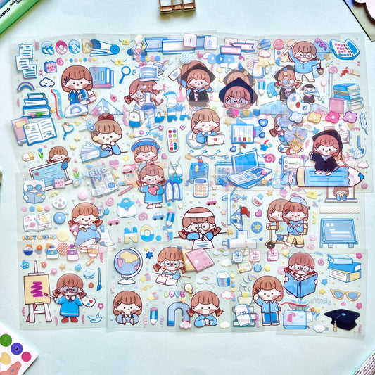 Set de Stickers Troquelados – Kawaii Escolar (25 planchitas) 🎒📘✨