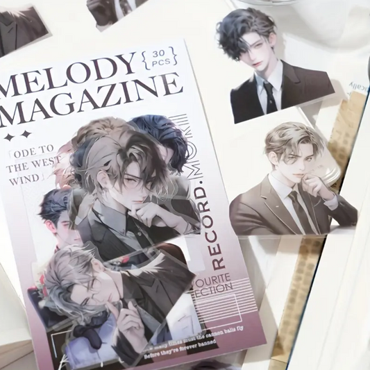 Set de Stickers PET – Melody Magazine (30 piezas) 🎵📖✨