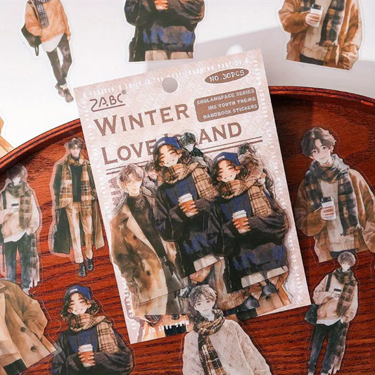 Set de Stickers PET – Chicos Coreanos en Tonos Neutros (30 piezas) 🖤🧥✨
