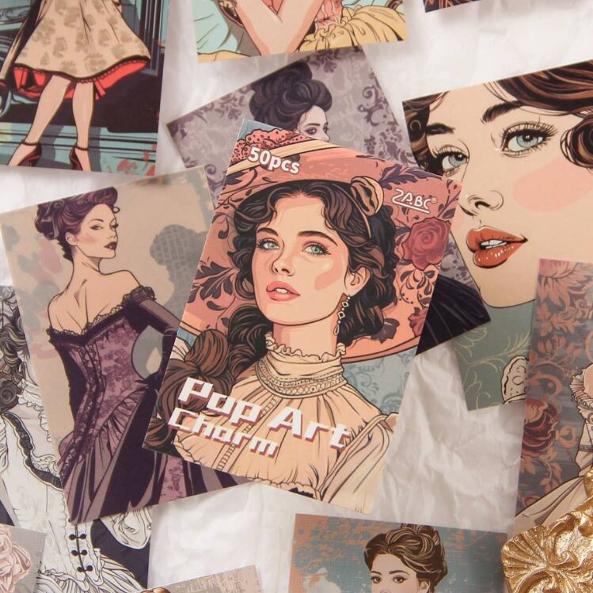 ✔ 50 páginas adhesivas, cada una con un diseño vintage de damas elegantes ✨