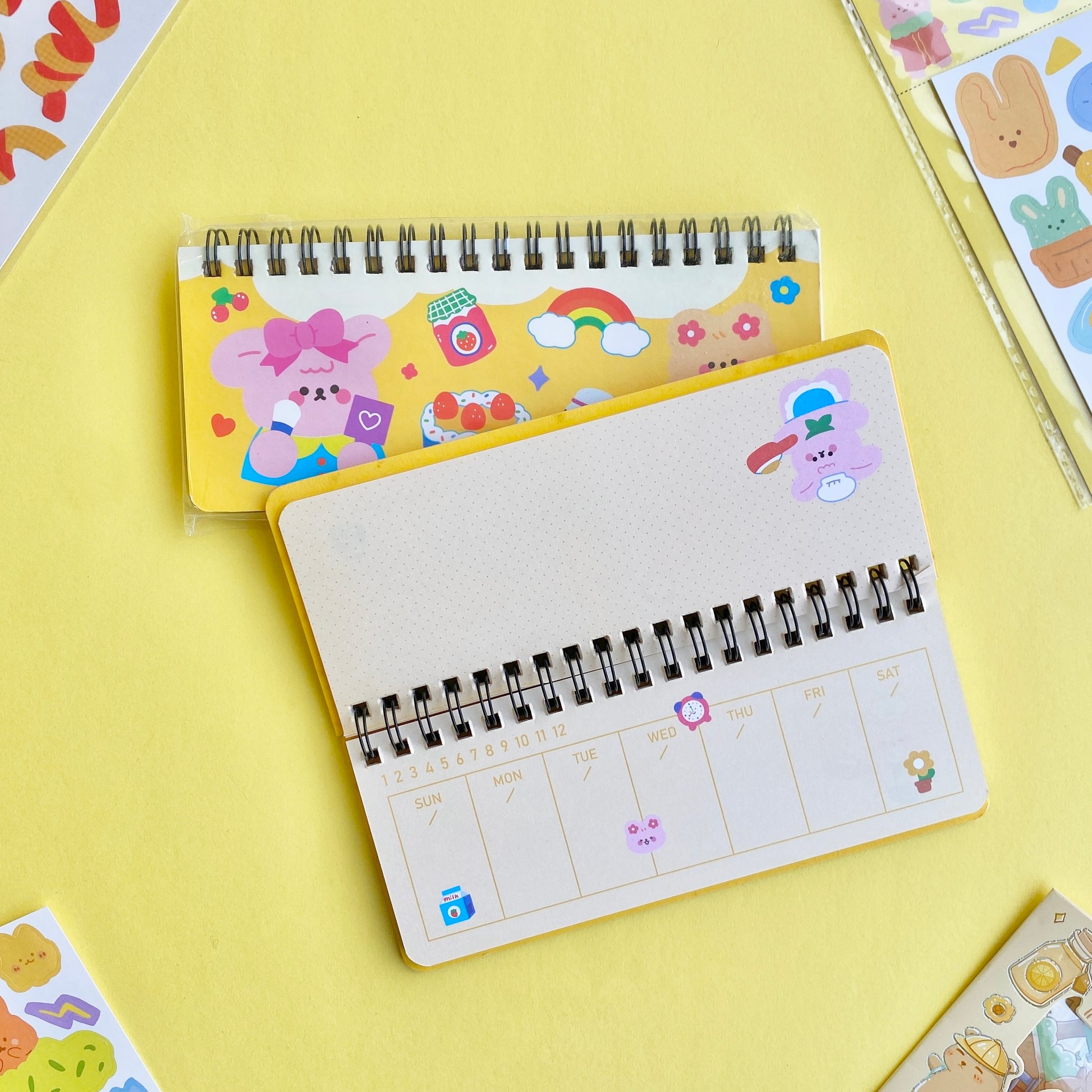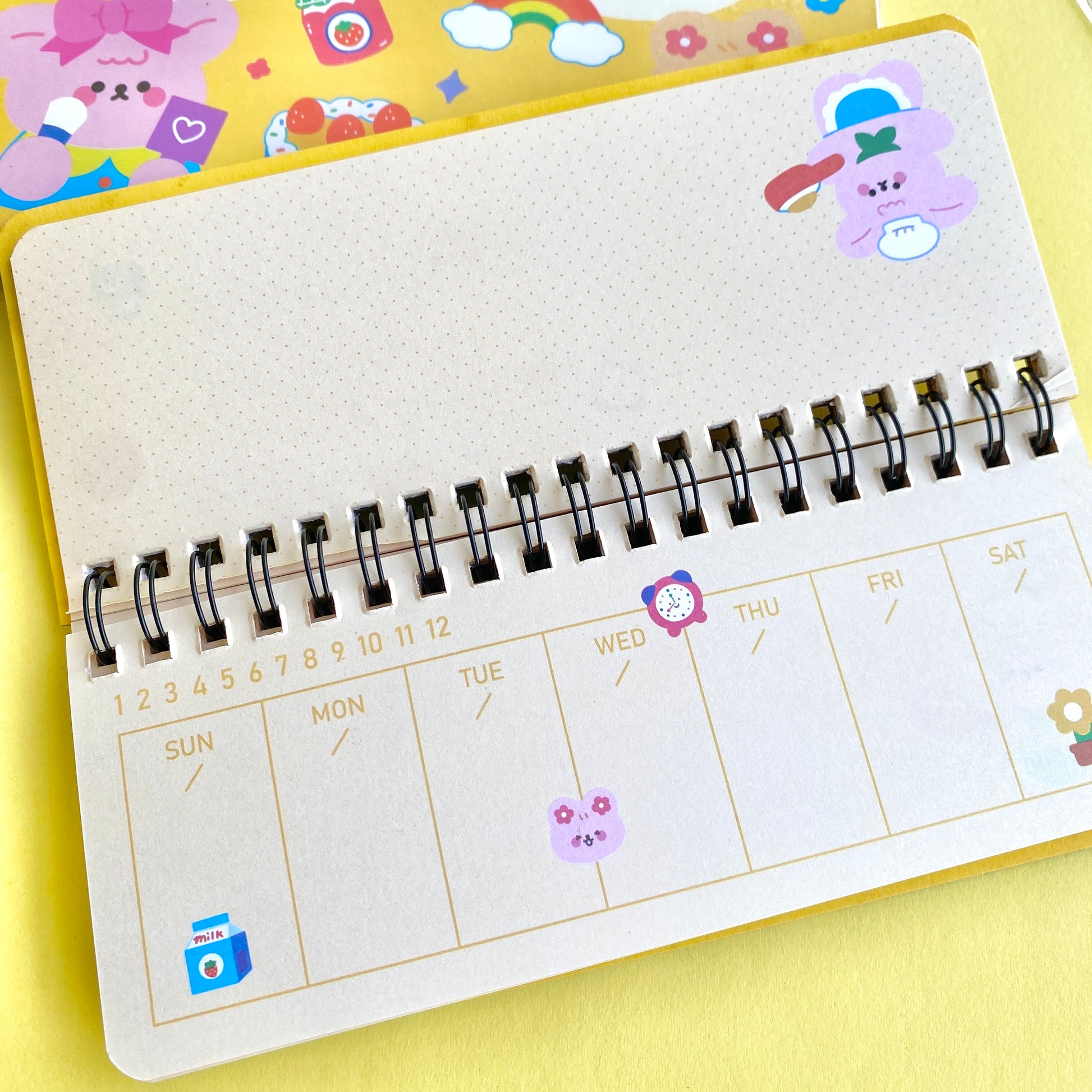 Planifica tu semana con este planner anillado kawaii, diseñado para acompañarte en cada día con un toque alegre y organizado. 💛🐻 Con una tapa extra dura, es súper duradero y su diseño en tonos amarillos con adorables ositos lo hace tan funcional como encantador.