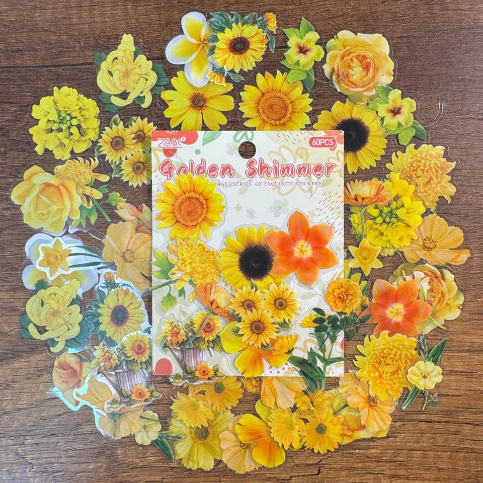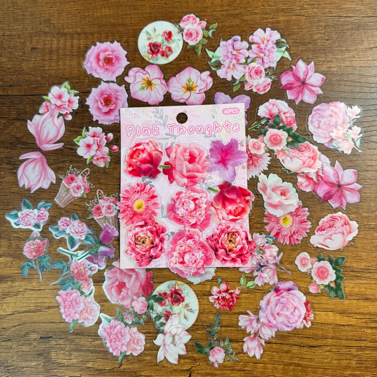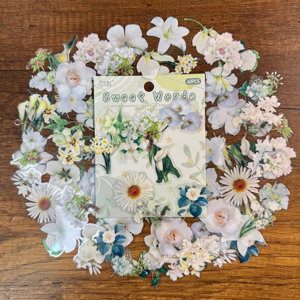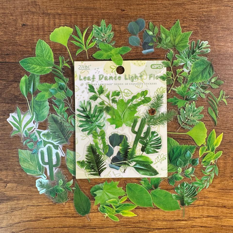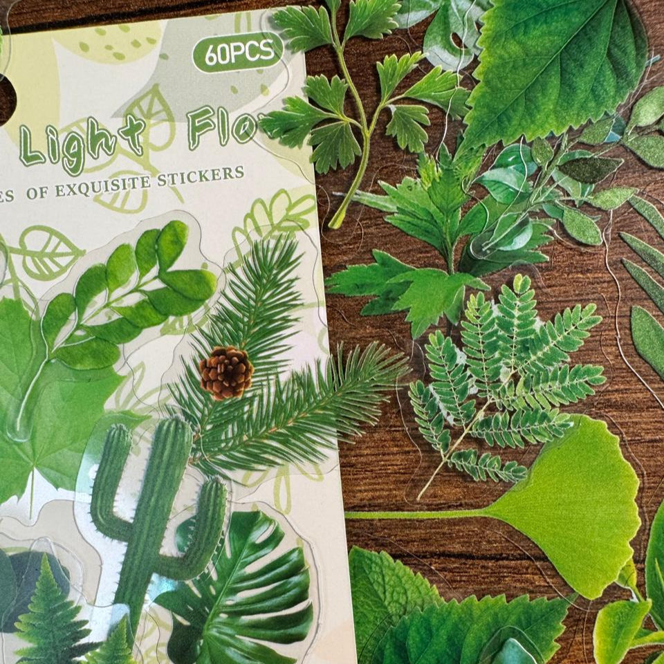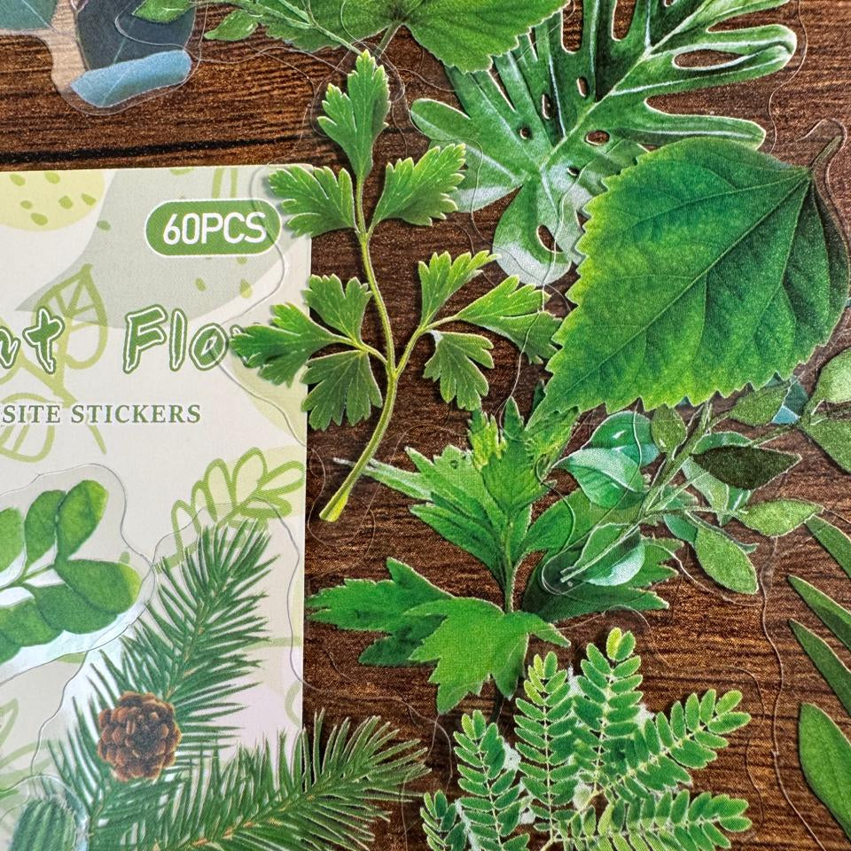 Set de Stickers PET – Flores & Hojas (60 piezas) 🌸🌿✨
