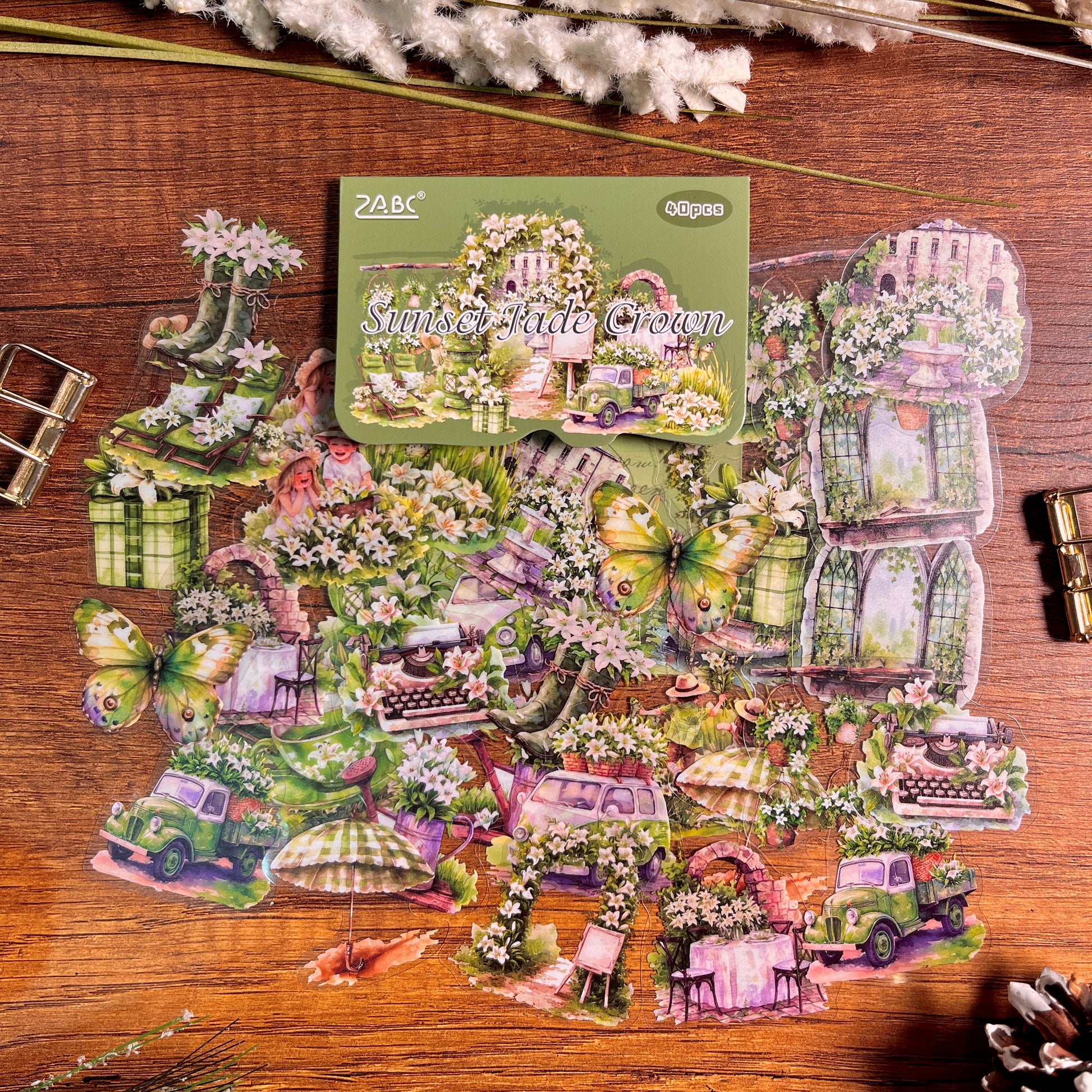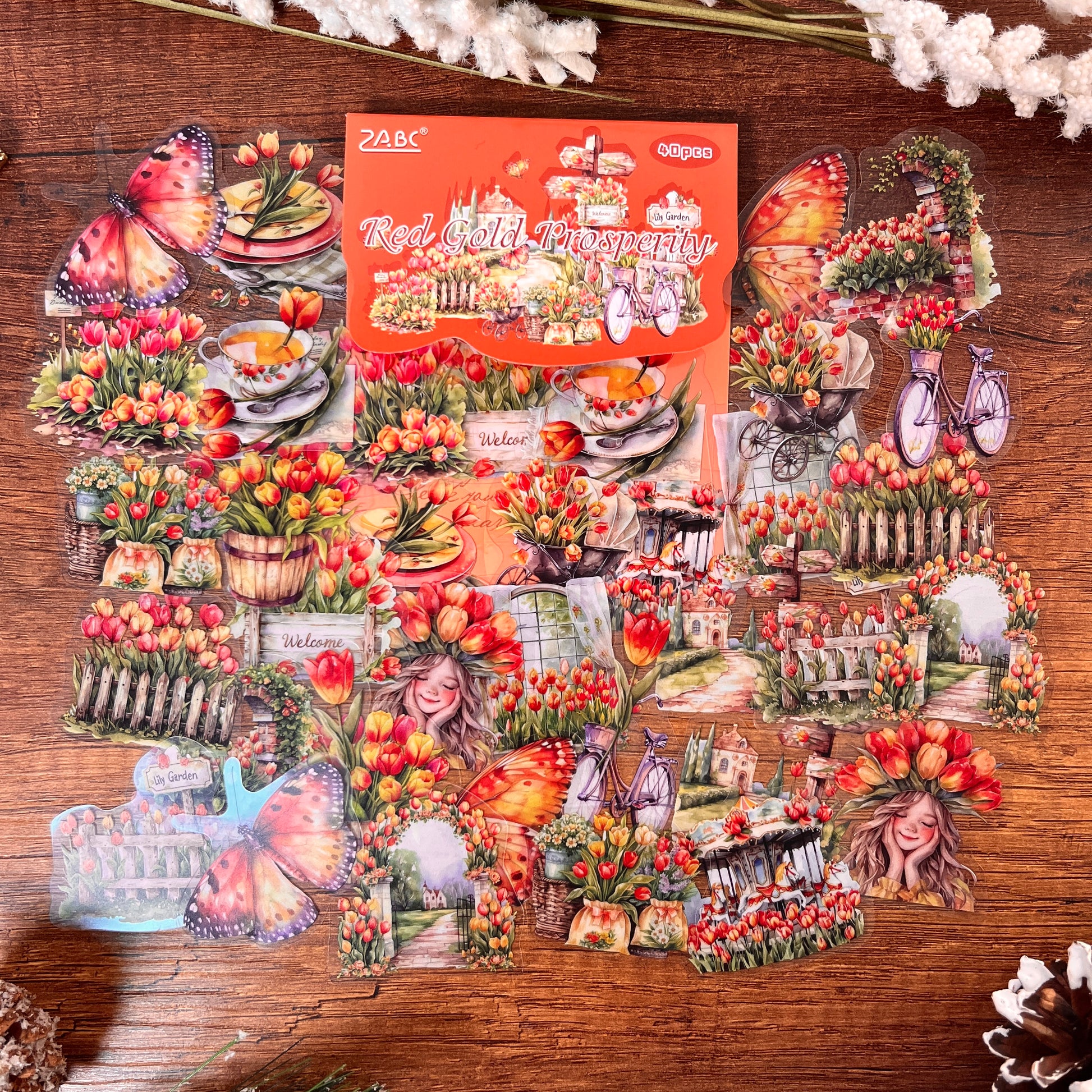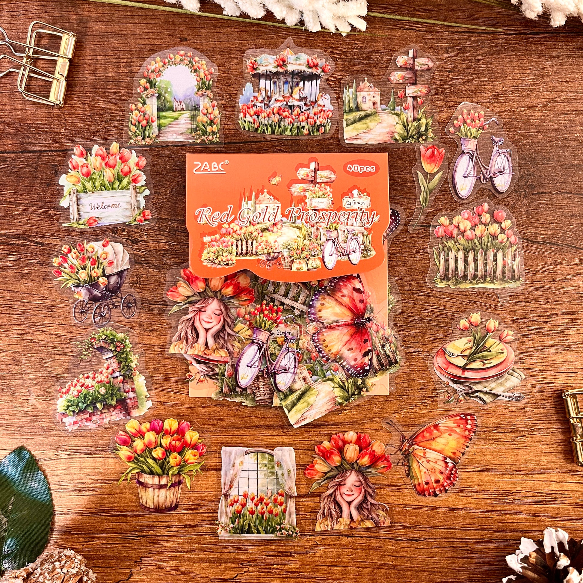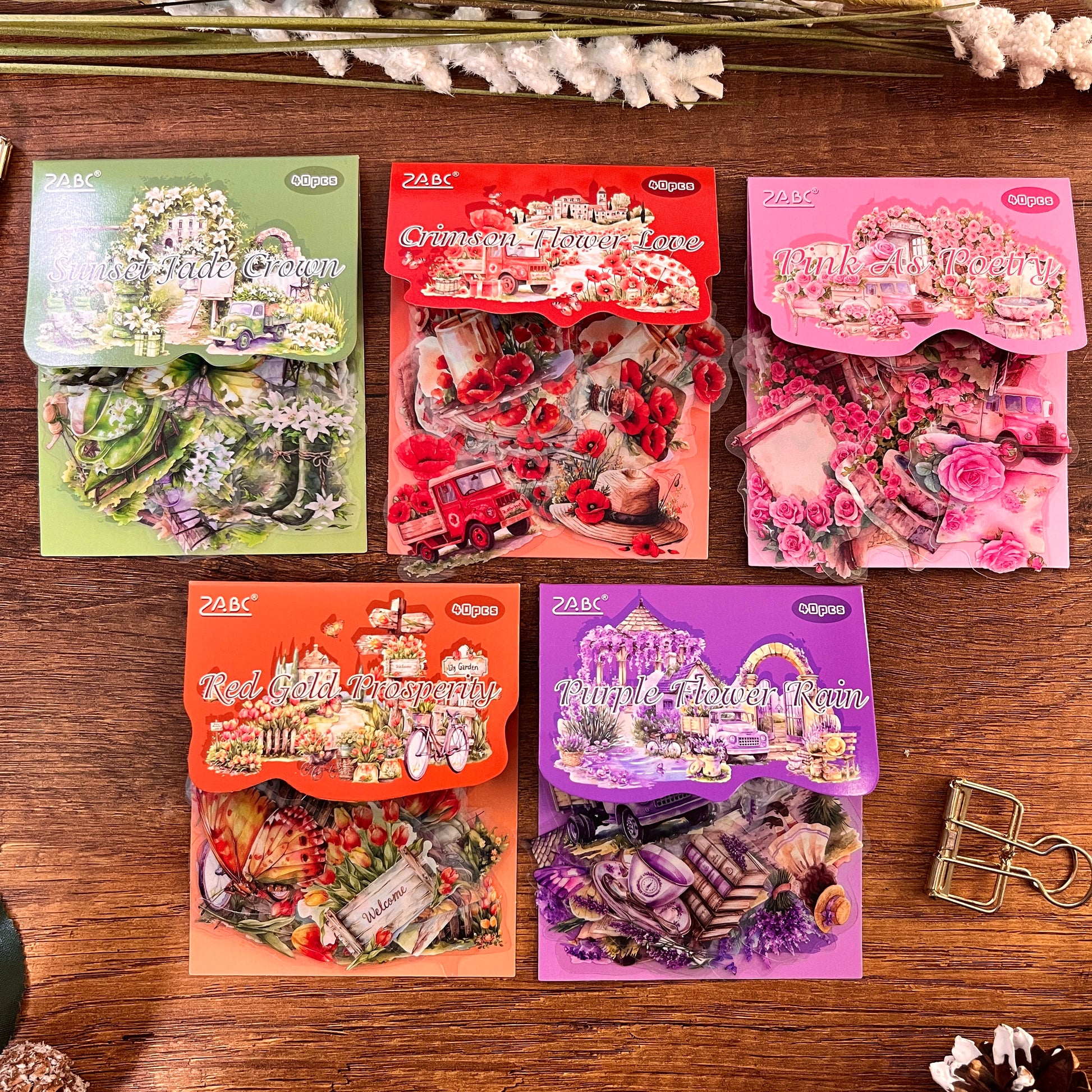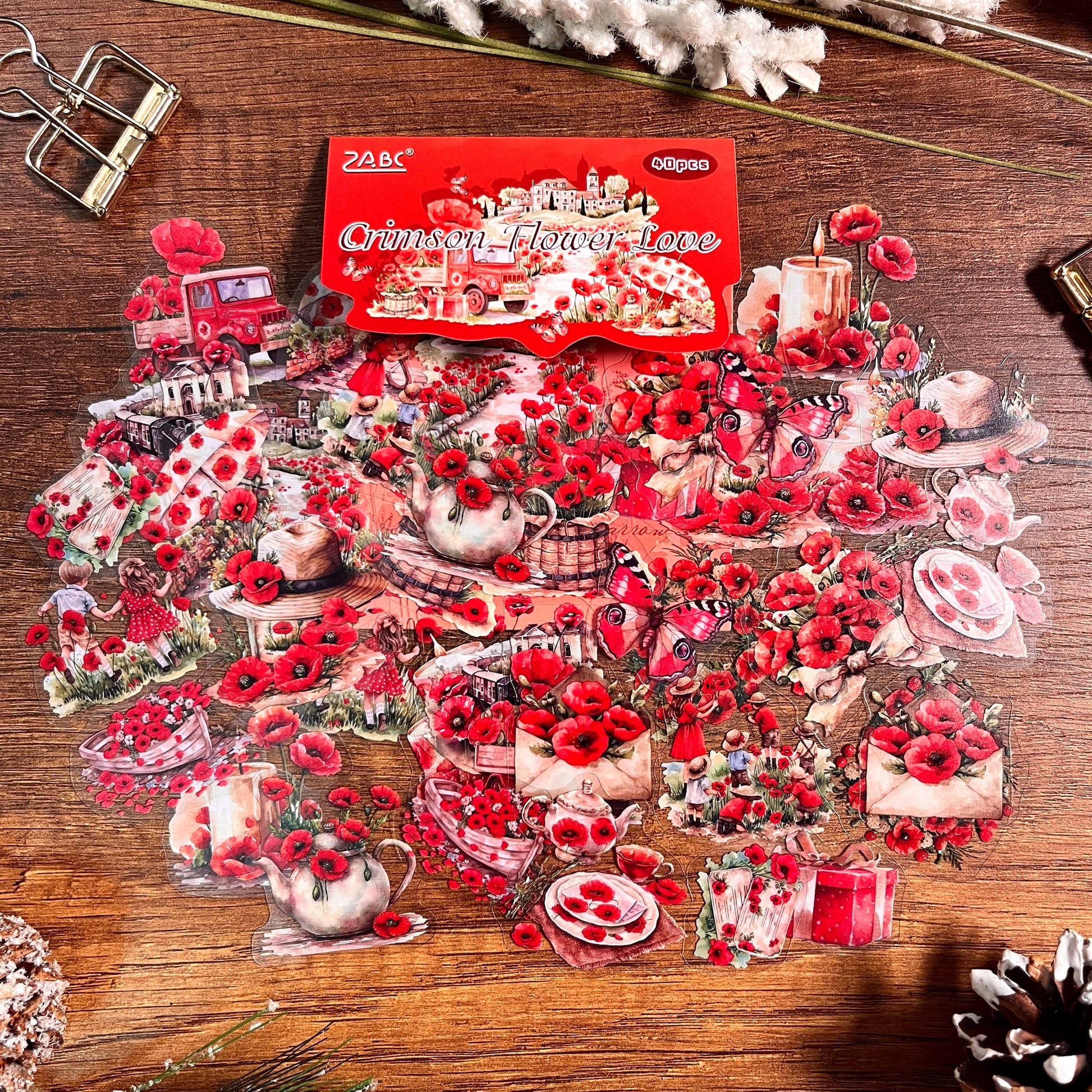 Set de Stickers PET – Vintage Floral (40 piezas, 5 variantes) 💐✨