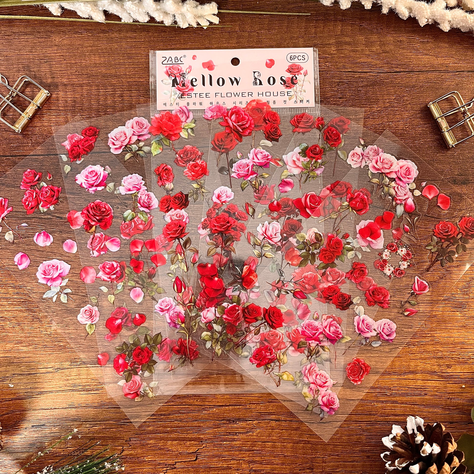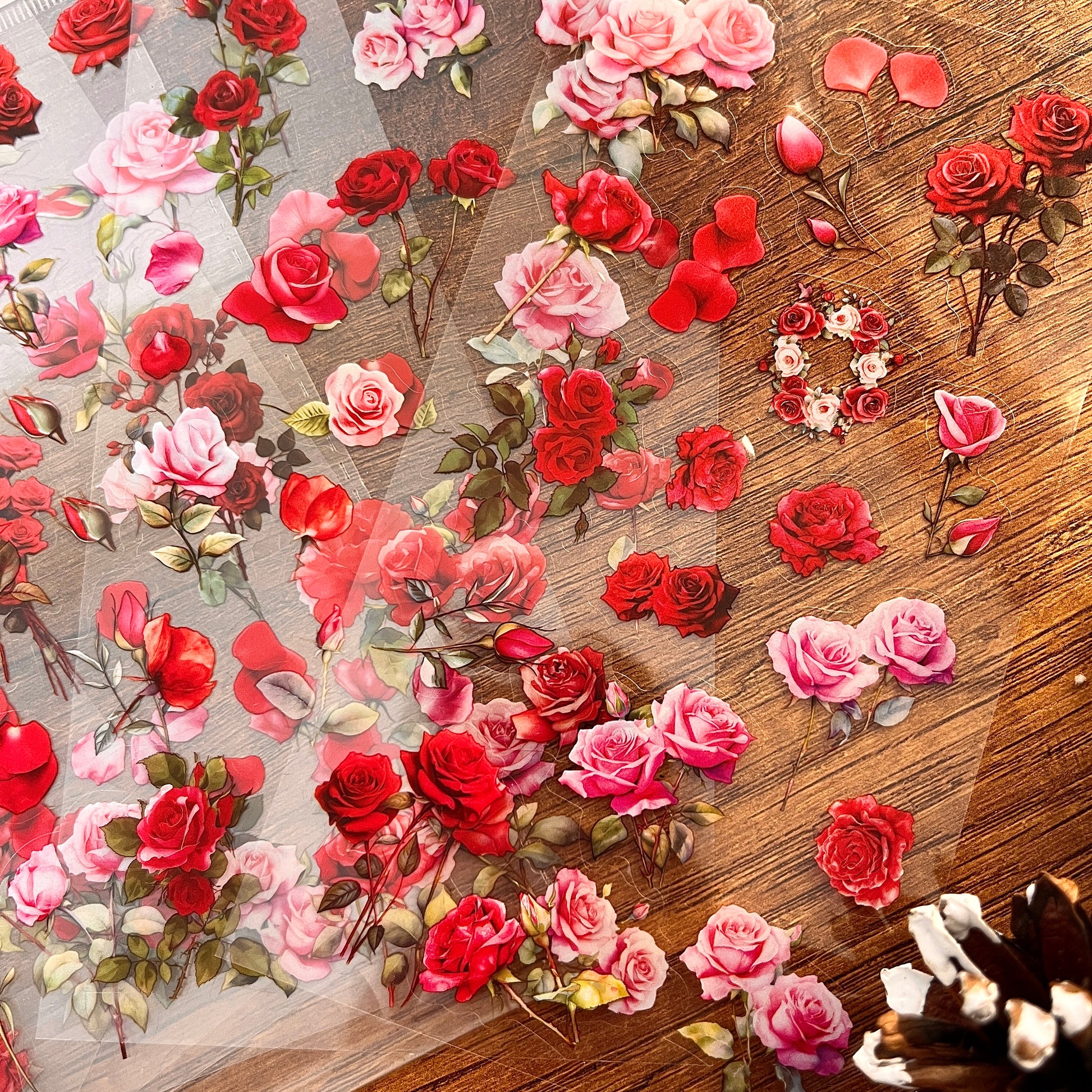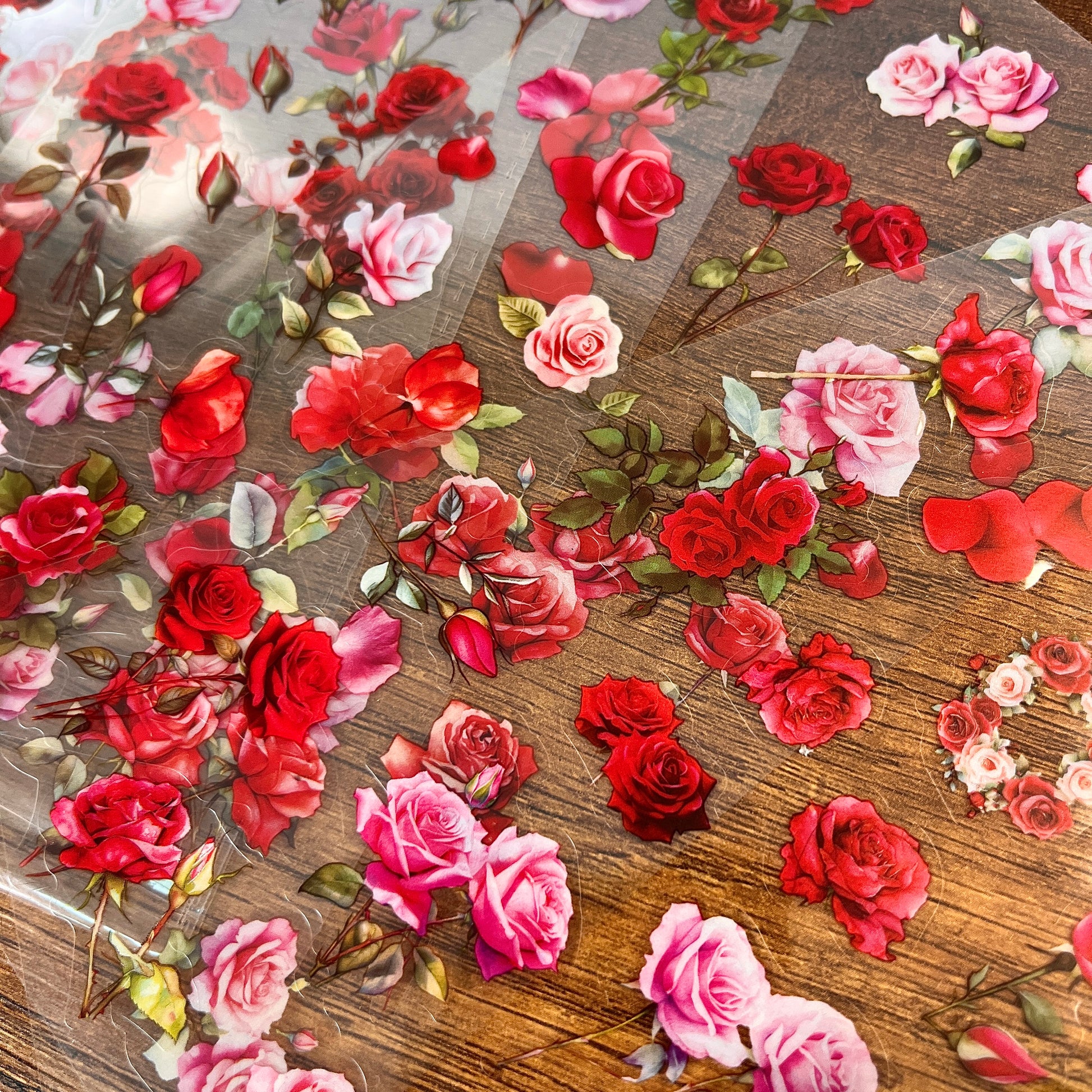 Set de Stickers Troquelados en PET – Rosas Rojas & Rosas (6 planchitas) 🌹✨