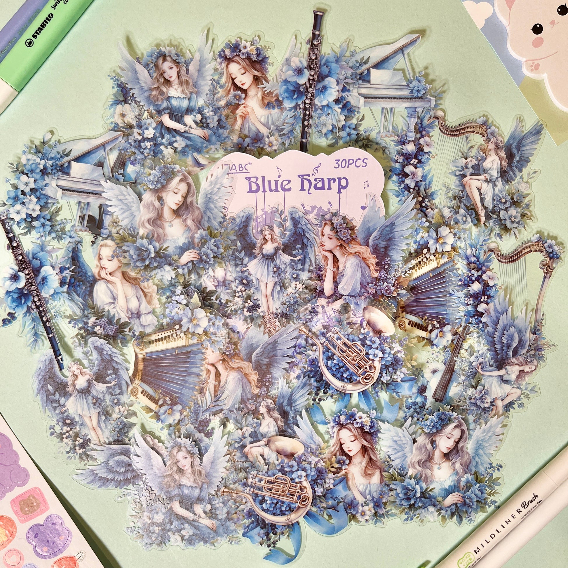 Decora tus creaciones con un aire delicado y etéreo con este set de 30 stickers en PET, con ilustraciones de ángeles, flores e instrumentos musicales. 👼🎻🌸 Perfectos para añadir un toque romántico y nostálgico a tus journals, scrapbooks y proyectos creativos.