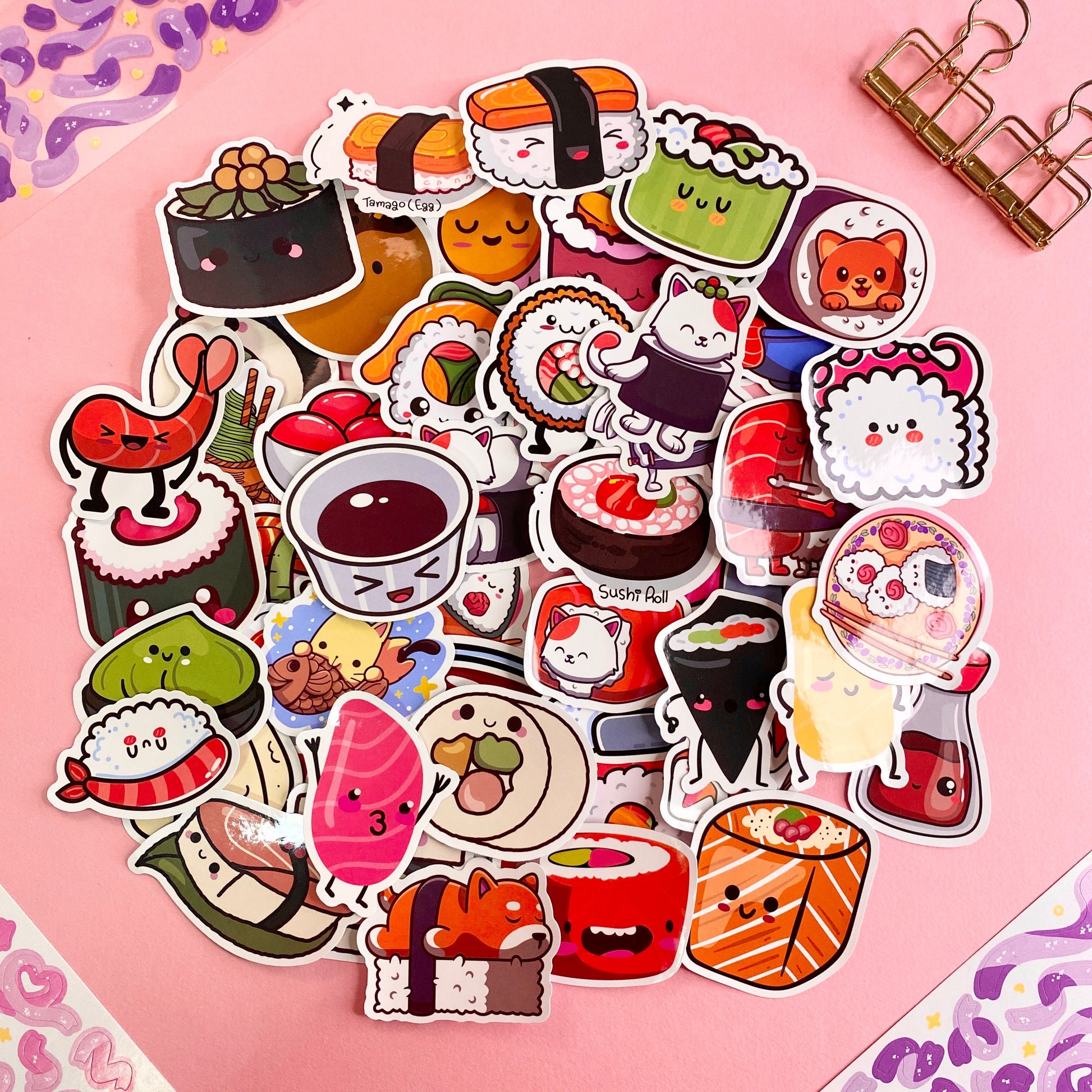 Dale un toque delicioso a tus creaciones con estos stickers de sushi, perfectos para decorar journals, planners, scrapbooks y más. 🍙🥢 Desde nigiris hasta makis, cada sticker captura la esencia de este icónico platillo japonés con un diseño kawaii y vibrante.