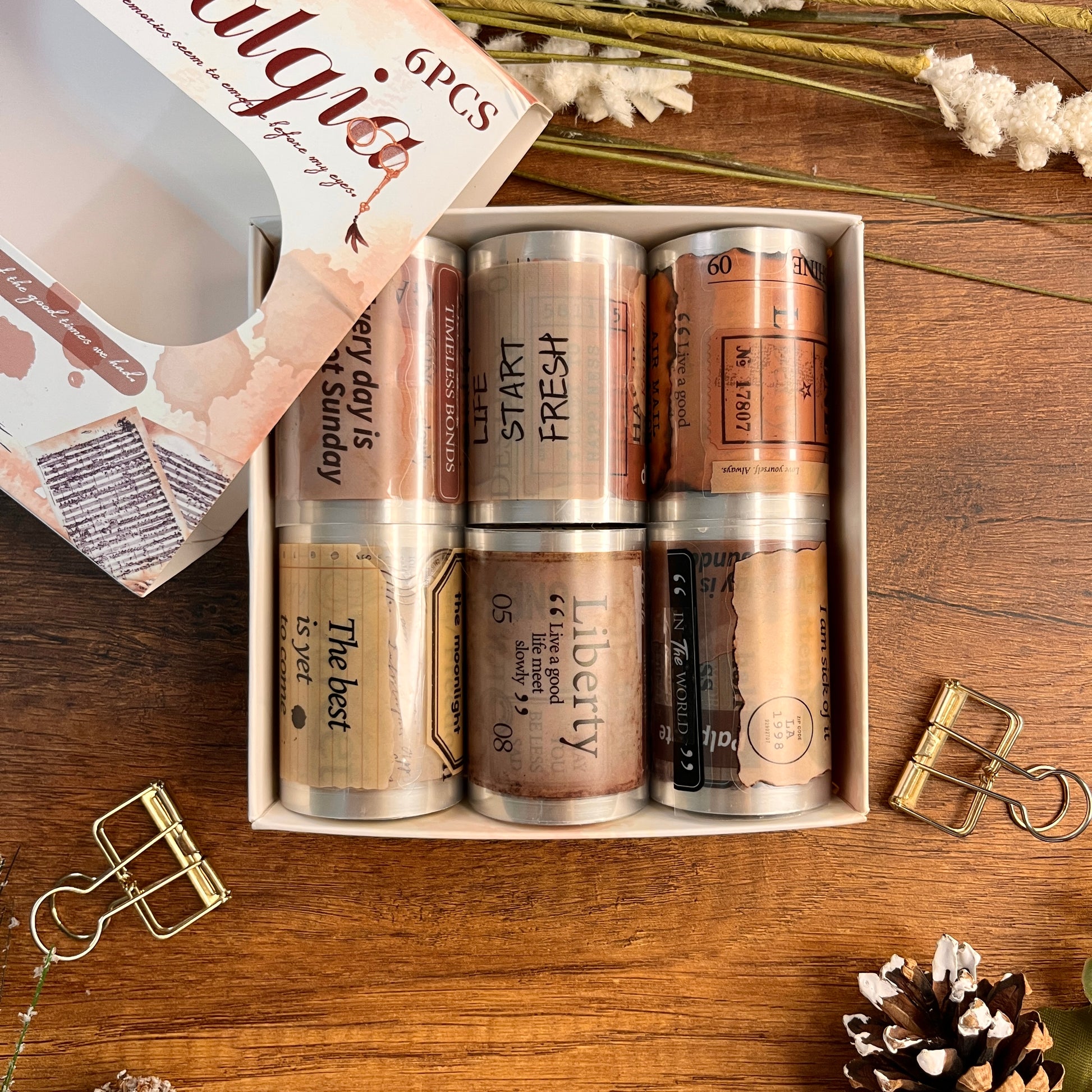 Set de Cintas Troqueladas – Páginas del Tiempo (6 rollos) 📜✨