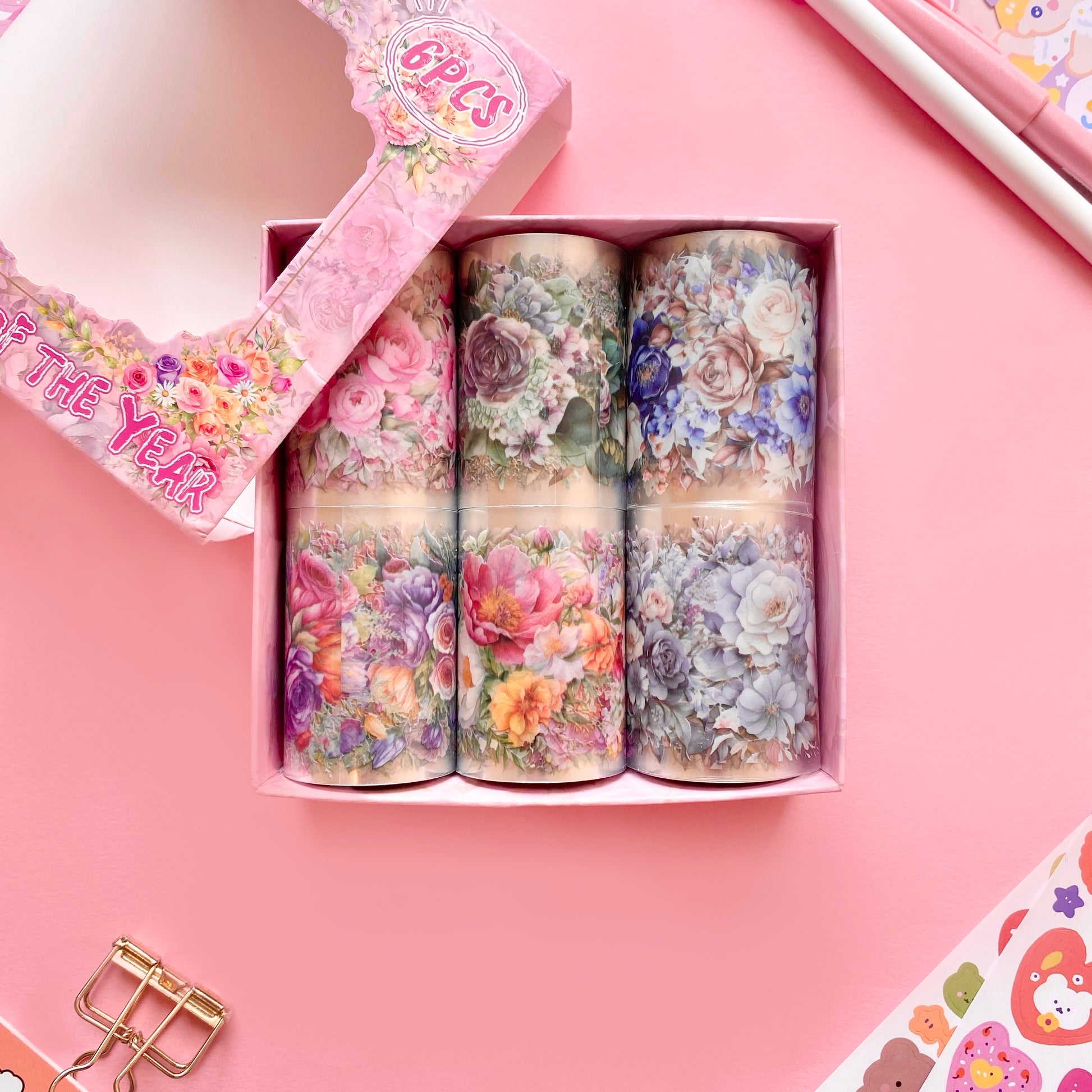 ✔ 6 rollos de cinta decorativa con diseños florales únicos 🌷